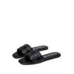 A cushy foot bed puts bouncy comfort in this sporty white-soled slide sandal stamped with the iconic logo silhouette.