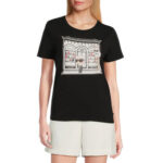 Crafted of a soft cotton blend, this Karl Lagerfeld Paris T-shirt features eye-catching Eiffel Tower motifs, adding a vibrant touch.