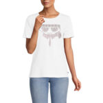 Elevate your basic wardrobe with this cool, stylish tee that shows off an embellished cat graphic front and is perfect for everyday wear.